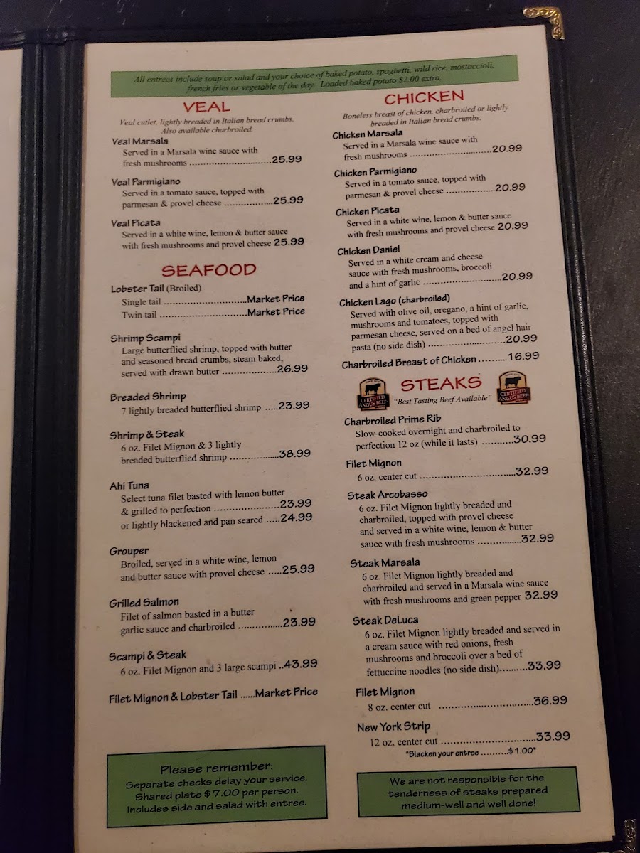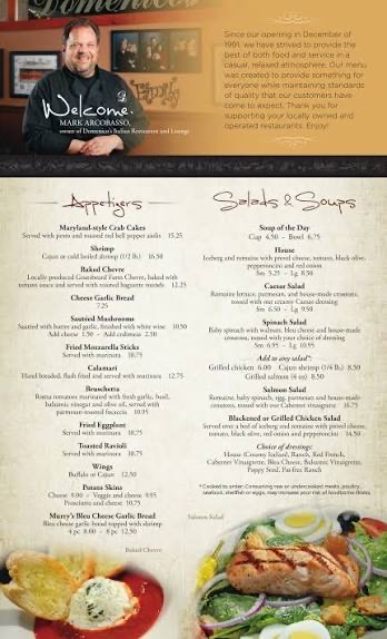 Domenico's Italian Restaurant offers a menu that blends classic Italian fare with hearty steakhouse favorites, creating a balanced dining experience suited for relaxed gatherings and special evenings alike. Guests can expect a selection ranging from comforting pasta dishes like lasagna and rigatoni to expertly prepared steaks such as the charbroiled prime rib and filet mignon. Sides and starters like stuffed mushroom caps, Caesar salad, and cheese garlic bread complement the main plates, adding familiar flavors that feel both satisfying and approachable.
